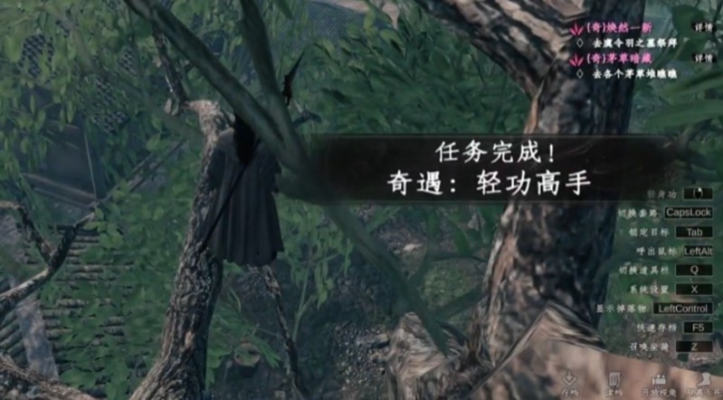 云鹤村内有一棵特别显眼的大树,树干粗壮枝叶茂密。轻功高手就站在高高的树梢位置,玩家需要使用基础轻功或者借助周围环境中的可攀爬物才能到达。成功登上树梢后,与轻功高手对话时要选择虚心求教的选项,这样才能获得他的认可。