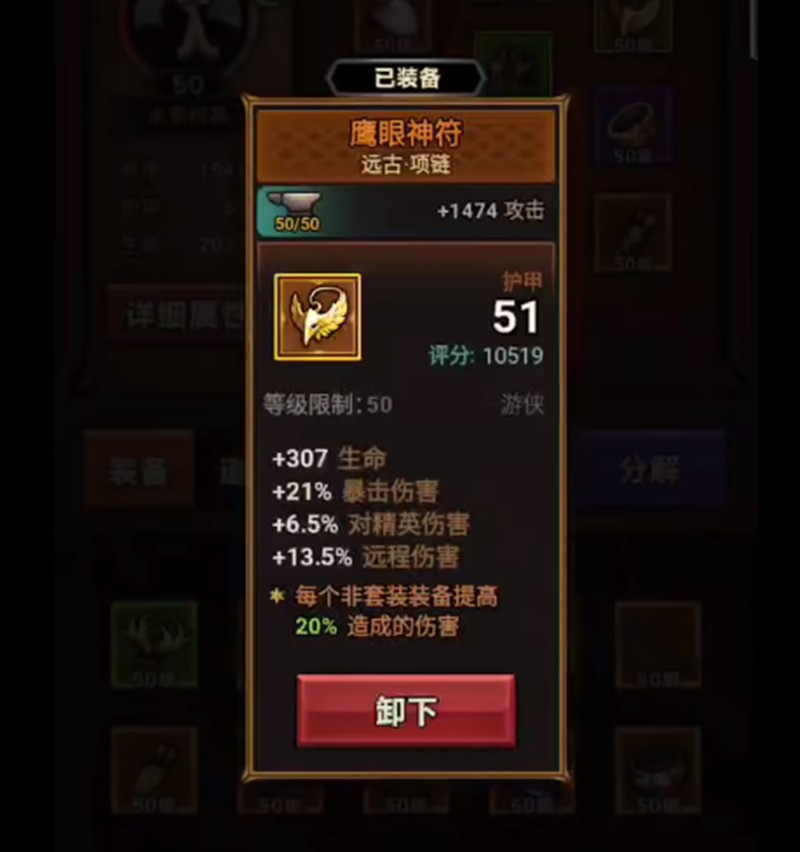 鹰眼神符作为远古项链能提供307点生命和13.5%远程伤害加成。深渊护手手套则能带来292点生命和9.5%攻击速度提升。这些装备组合能显著增强平A流的持续输出能力。