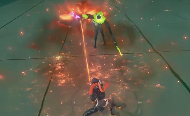 在后台时,奥菲丝的”灼红旋涡”会自动触发。当队友攻击时,她会释放强力激光扫射造成持续火伤。能量超过100点时,长按特殊技可进入激光喷射模式,不仅大幅提升输出,还能用尾巴防御反击敌人的攻击。这个技能让她在后台也能提供稳定的火力支援。