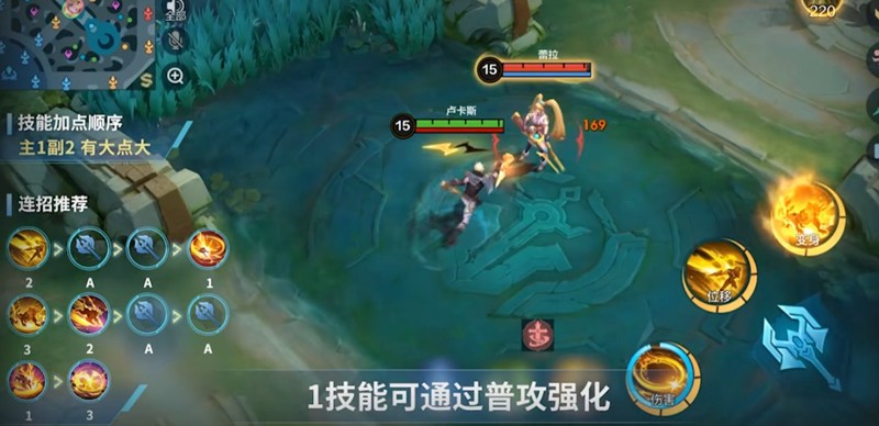 卢卡斯的技能加点顺序推荐为主1副2,有大点大,连招推荐为2-A-A-1-3-2-A-A-1-3。