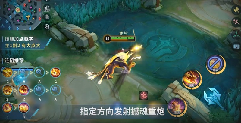 在圣兽形态下使用大招则是释放能量冲击波,短暂蓄力后对目标打出范围性的伤害,冲击波会在触碰到敌方或者达到最远距离后爆炸,并且有三次余震伤害。