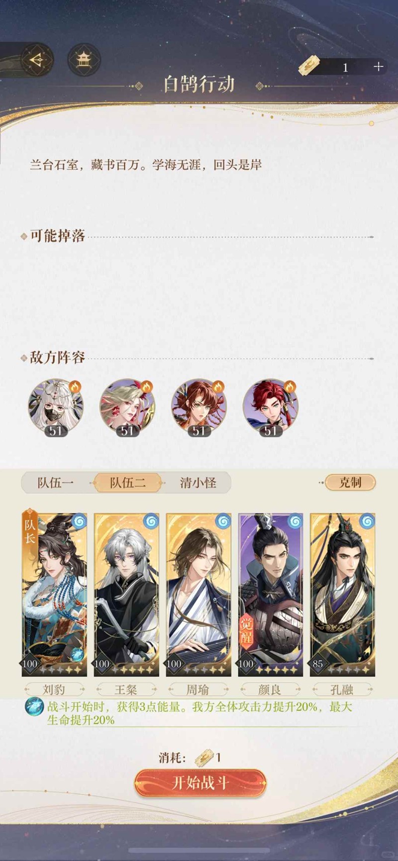 5.粲命盘如果刚好有攻击中+生命攻击提升,测试过可以压到4星90级粲也能勉强过,满足第4条即可。
