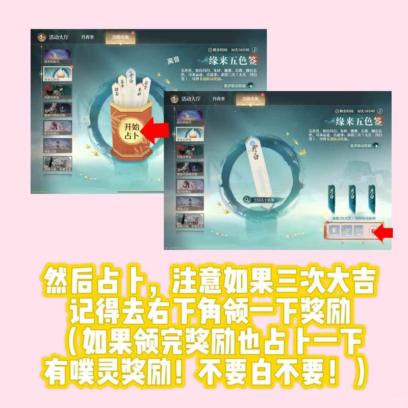 首先今日上线签到,并占卜!注意占卜获得奖励后也可以点一下,还有噗灵奖励拿了也不亏!