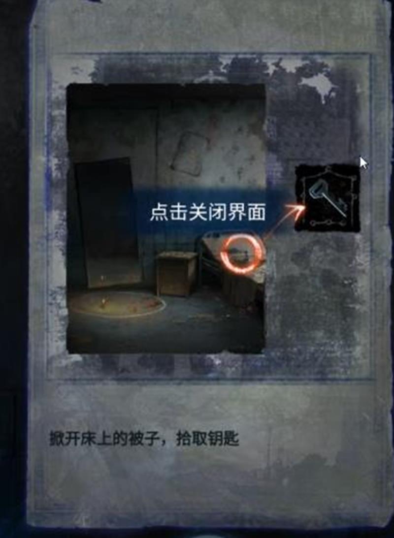 游戏开始后先完成剧情互动,点击床铺掀开被子可以找到一把钥匙。
