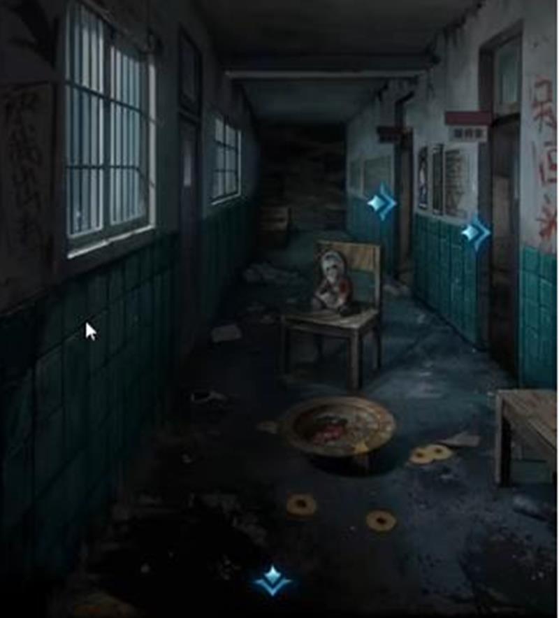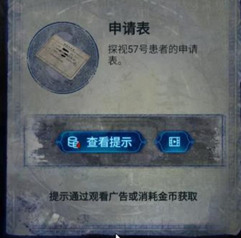 在探视窗口看到5号轮椅病人,用病例上的密码解开密码锁,获得吊扇道具。