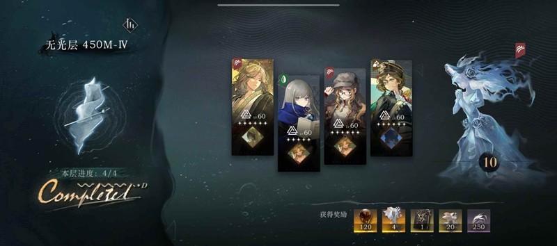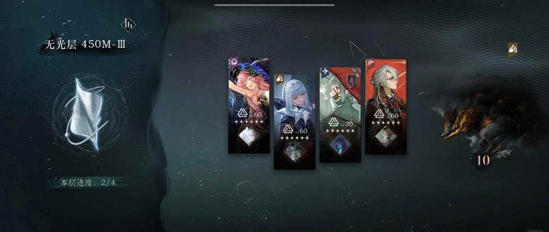 450-4也是参考的许多博主的攻略,我这个配队没咋动脑子直接一次过的,注意全程只能出吟诵牌和大招,要凑激情就用移牌合牌,不用担心激情不够,到后期基本每回合都能一人一个大