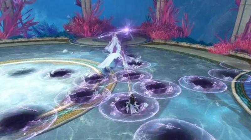 在这个阶段,玩家需要优先击败心渊中的浊影和游魂,防止它们侵蚀流珠。每击败一个浊影,海底世界就会出现流珠遗念,治愈这些遗念可以获得减伤领域,这对抵挡夜珑的”哀鲛恨歌”技能至关重要。