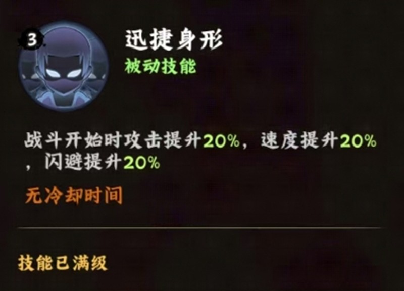 被动提升鸣人战斗能力的技能。战斗开始后立即生效,提升10%攻击力、20%速度和20%闪避率。这个增益效果会一直存在,让鸣人始终保持灵活的战斗状态。