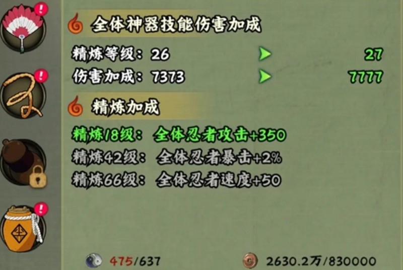 神器不仅能提供主动技能,还能为全队带来属性加成。新手期会获得第一个神器,后续神器需要通过特定条件或购买礼包获取。神器可以通过升级、精炼和升星来提升效果。升级需要强化石和铜币,精炼需要结晶,升星则需要同名神器碎片。合理培养神器能显著提升整体战力。