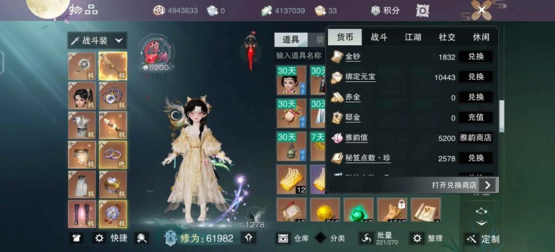 绑元的用处,目前个人是用来清空绑元特效了,之后就是每月的15个金片片(锦芳绣·珍),应急时的折扣紫片片(锦芳绣)或者升修材料等,后续可能会去买些衣服坐骑等,慢慢来,都会有的。