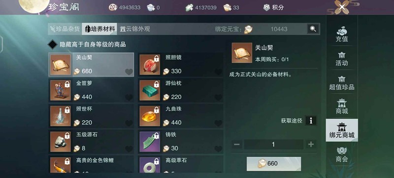 众所周知,绑元可以用来买许多东西,云锦外观、培养材料、珍品杂货等等,星阵材料也可以用绑元兑换。