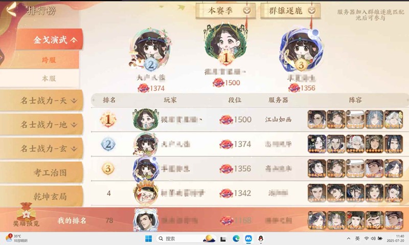 3.戚朱+徐奢+婆婆(高速马迁)(朱棣这比卡是真超标,不想说什么,半年时间还在t1,尼玛我单体一哥刘秀只登顶了两个多月时间)