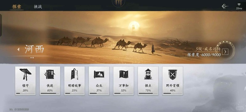 首先就是河西所有界碑,侠迹,主线,野外boss全部打完这个是整个大前提。侠迹一个给30探索度,野外boss一个就给50