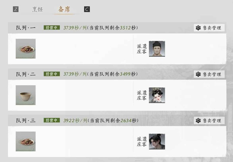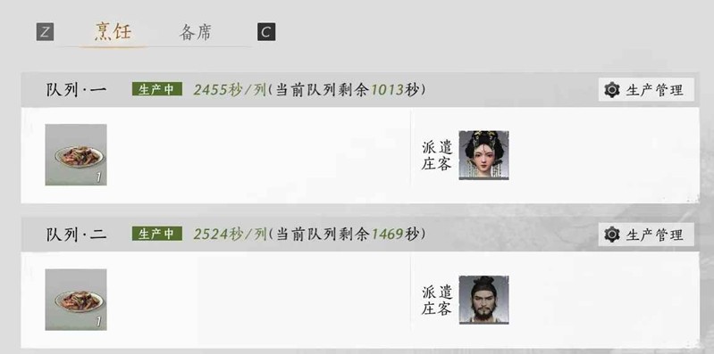 不管是烹饪/备席/酿酒,每条队列只做一个!