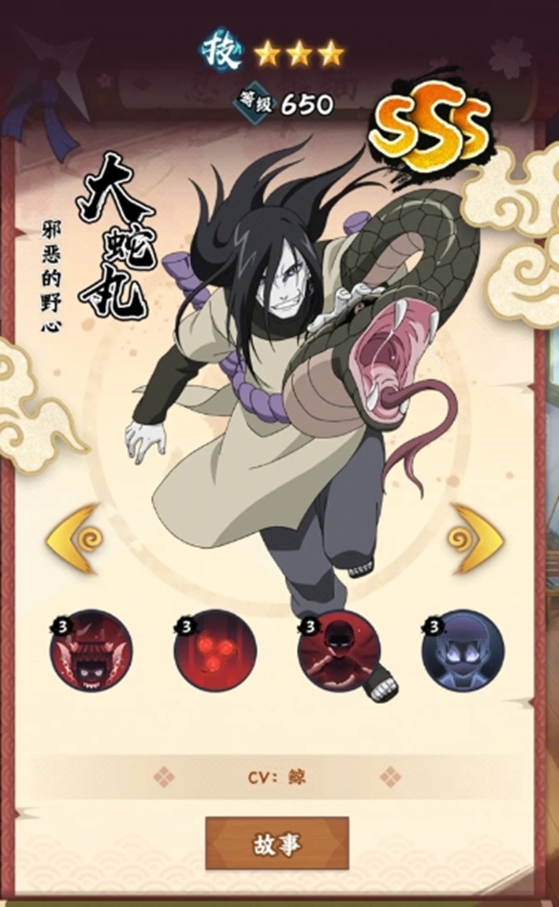 大蛇丸拥有独特的控制与复活机制,能为敌人附加各种咒印效果。在濒死时会对咒印最多的敌人造成爆发伤害并复活,在PVP中表现尤为出色。他的反击和吸收伤害能力让他在面对高爆发阵容时游刃有余。