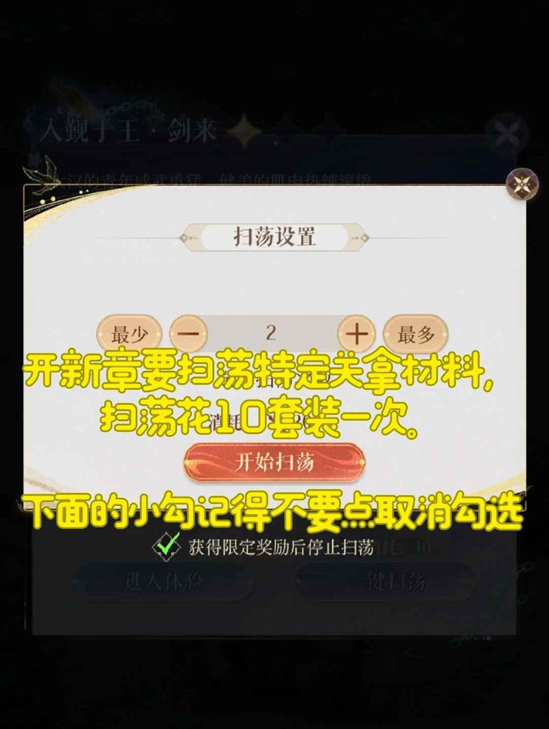 注意,扫荡对应普通关才掉对应道具,缺哪个扫哪个的普通难度,困难噩梦不掉。