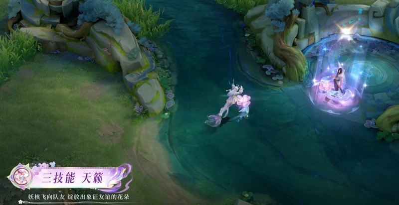 妖核飞向队友,绽放出象征珍贵友谊的飞花。