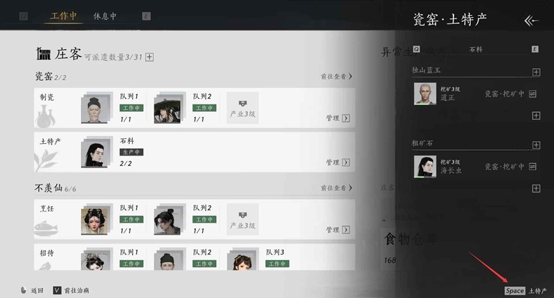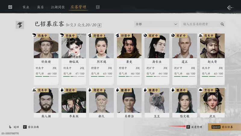 8.可以从庄客管理的派遣管理进入管理一览,点击对应设施的前往查看可以跳转。采集需要点开对应人员头像进入土特产设置,【但移动端存在无法跳转的问题,需要从家业-经营不羡仙中进入】