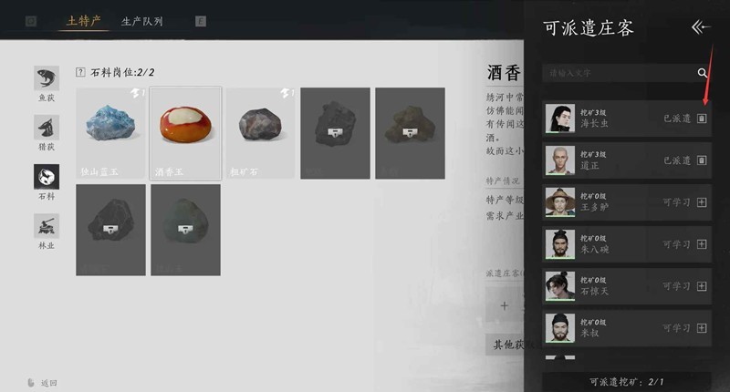 10.目前酒除了开坛宴、给雇员提供精力、四级开放的点石瓯周常订单没有他用,可以不用放棋桌换班,在庄客-庄客消耗处设置食用。四级家业后可以卖给老金,但收益主要来自于做菜,种植优先满足做菜需求