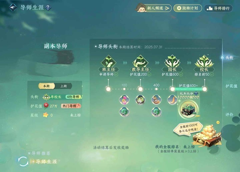 【护花星级】如果只需要拿纹玉的话不需要刷,小芽给大号评价即可获得星级,带小芽探索/副本等都可以弹评价