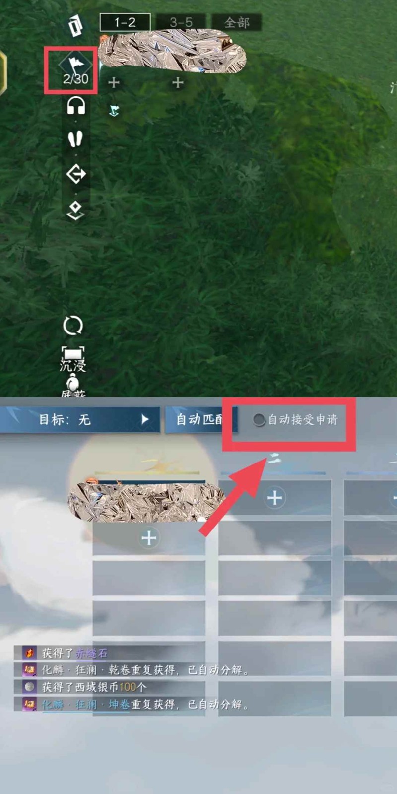 芽号进队后需要把【自动跟随】打开,方便团长拉跟随开团