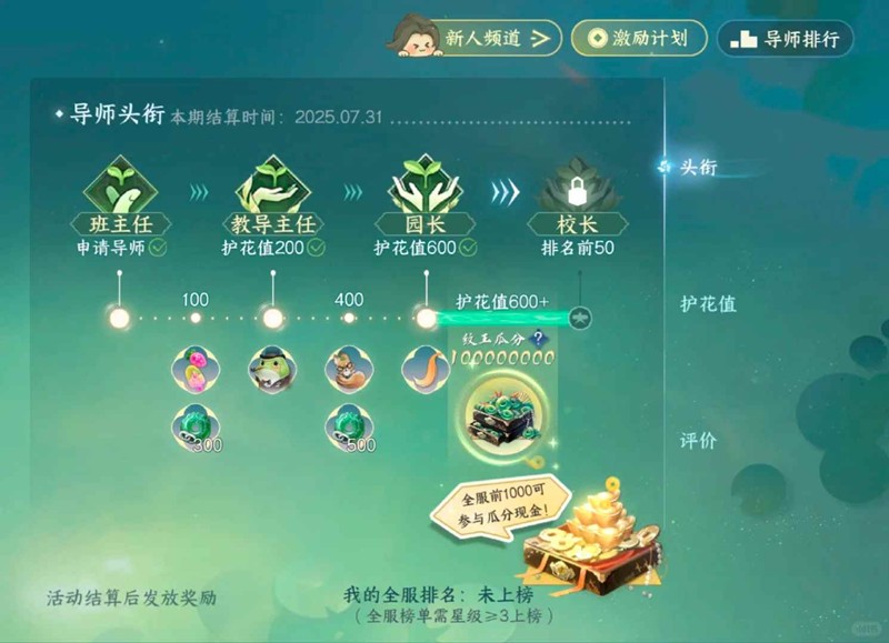 护花值600+即可参与瓜分,1000/2000点各设一档