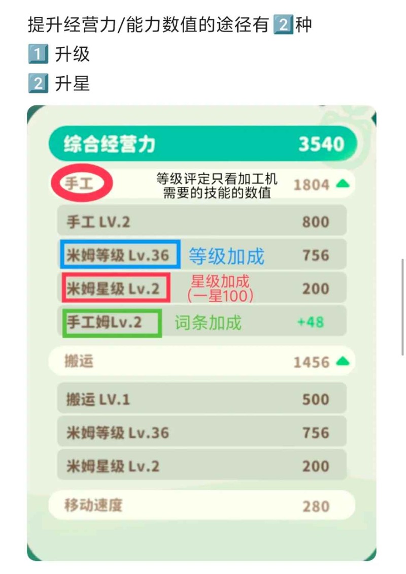 提升技能有升级和升星两种方式,想达到S级机器要求有对应词条的米姆升级起来更省力,因此不用去刻意追求手工词条lv.4,哪怕是lv.1,只要数值够用就行。