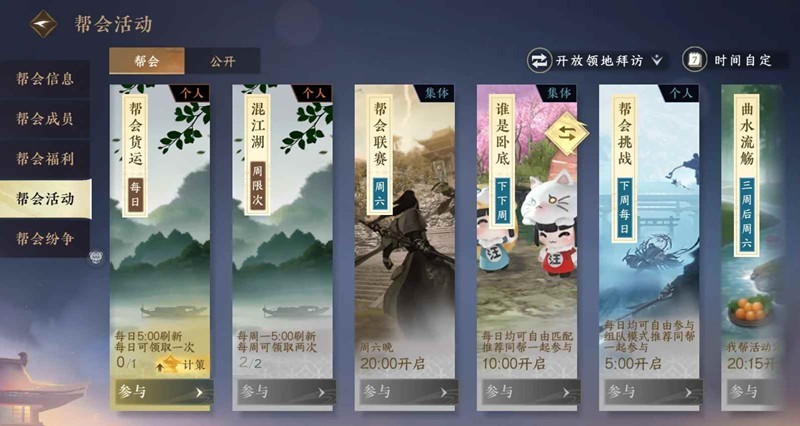 10、帮会活动、帮战:参与帮会活动和帮战,不仅能获得铜币,还能提升帮派荣誉!