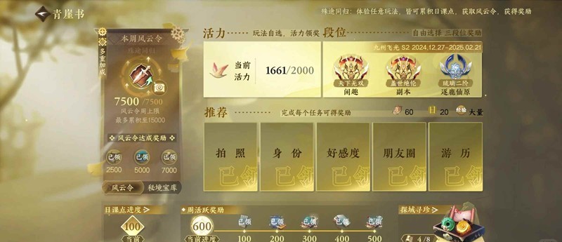 日课,我喜欢刷到简单的很快就做完了。朋友圈,游历任务,拍照,身份,庄园(和其他的每日必做有很多重复的地方)