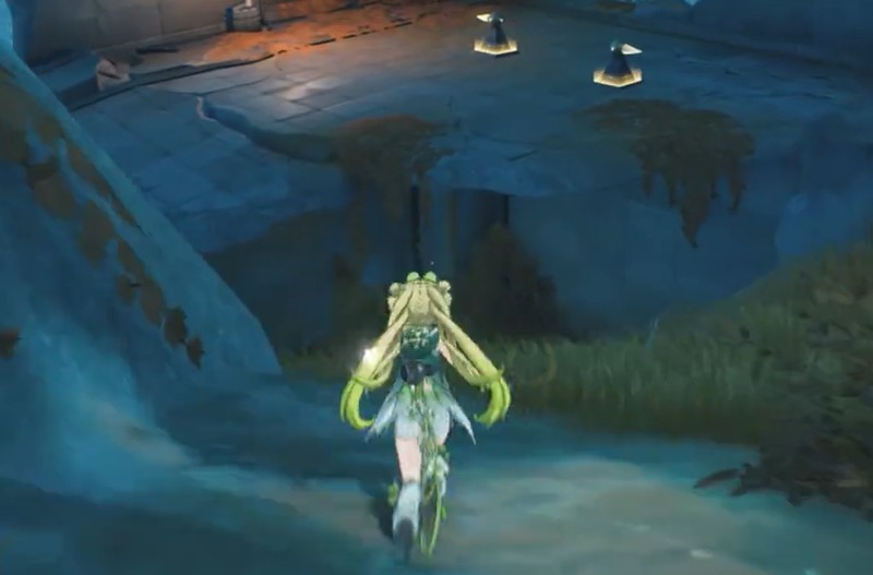 来到北落野指定位置后,会看到两个发光积木块和一些特殊布局。先往左边走跳下去,沿着小路前进就能找到缺失的两个发光积木。第一个积木要放在布局的左下角位置,第二个则要放在右下角。接着把上方的积木块扔到布局中间处。