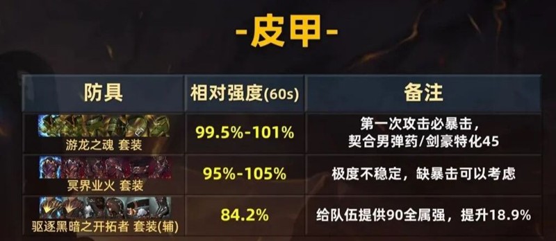 游龙之魂套装是目前皮甲职业的毕业首选,这套装备提供了极高的暴击率和三速加成,完美契合皮甲职业的输出特性。特别是对于依赖暴击的漫游枪手和剑豪来说,游龙之魂能最大化他们的输出潜力。套装效果还能提升技能释放速度,让连招更加流畅。