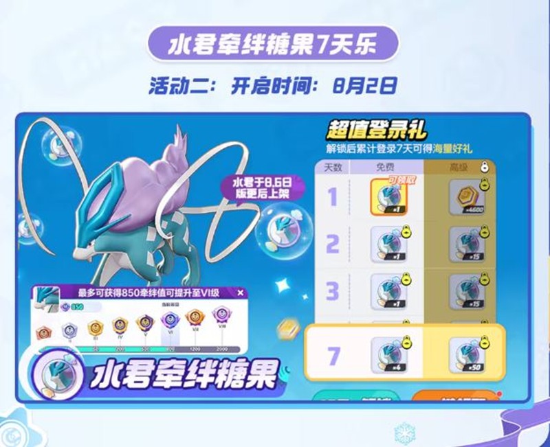 水君牵绊糖果7天乐:开启时间为8月2日,玩家可以通过活动获得超值登录礼。