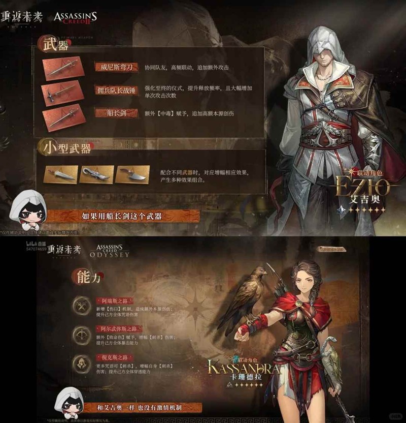 重返未来:1999本次联动将有三名原作角色实装,分别是《刺客信条2》艾吉奥、《刺客信条:奥德赛》卡珊德拉和阿利克西欧斯。那么联动角色的机制是什么,又如何配队呢?为你准备了一份攻略,一起来看看吧~