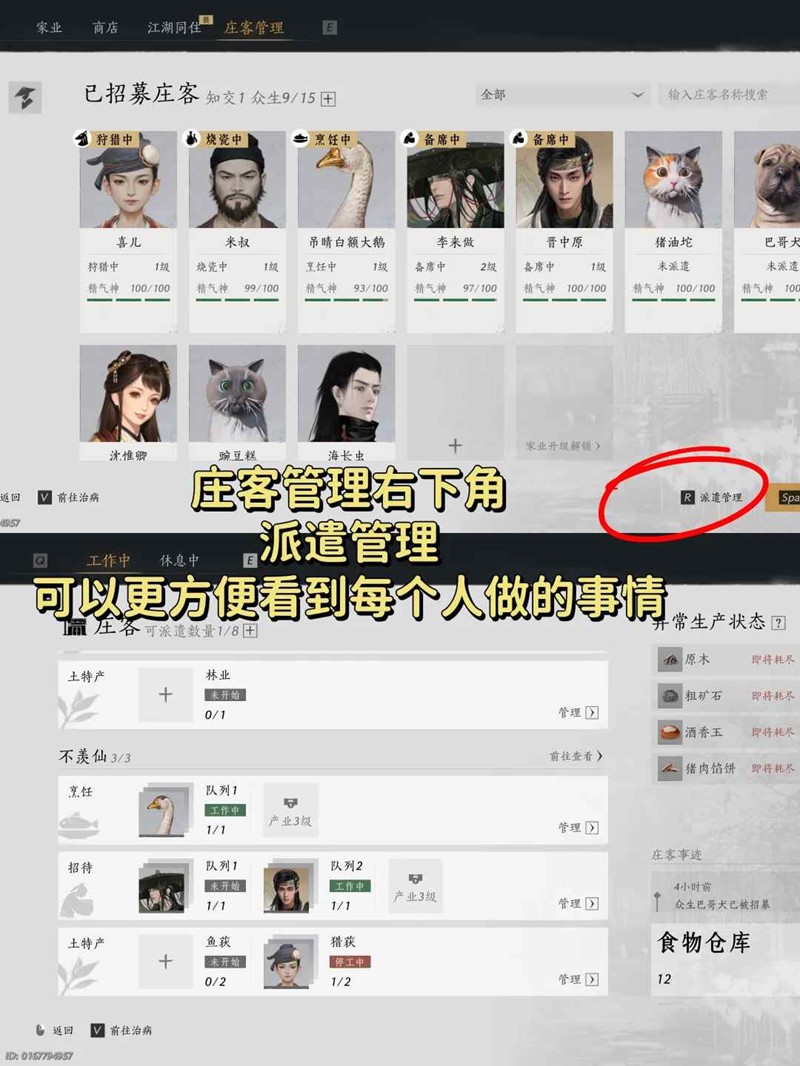 10.不需要给庄客换班,在庄客界面右下角有个精气神,里面可以设置加班菜。