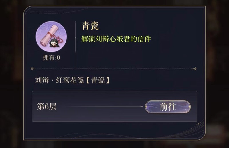 以难度1的刘辩限定奖励为例,通关第6层可获得红鸾花笺青瓷,第11层解锁恋念之音无逾我墙,第23层获得红鸾花笺劝酒,第28层拿到花瓶姜黄。这些奖励能解锁刘辩的专属语音、剧情、信件和家具装饰。傅融的限定奖励夜绩吉光片羽可以开启他的专属剧本《夜绩》,袁基的柏舟吉光片羽则能解锁剧本《柏舟》,这些道具都能让殿下们体验到更丰富的角色故事内容。