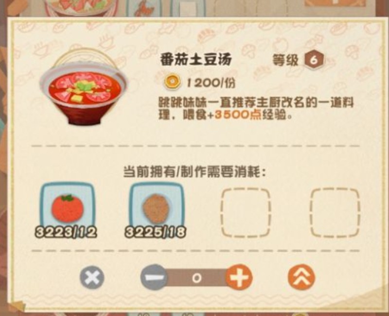 食谱和食材都有等级之分,等级越高需要的食材越多,但获得的经验值也更多。玩家可以通过挑战妖怪退治关卡来提升食谱等级。制作完成的美食要及时收取,放在灶台上是不会自动收入背包的。