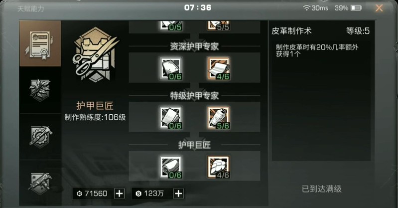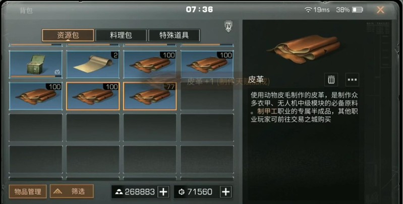 当制作熟练度达到30级后,就可以在家中的装备制作机里将这些材料加工成皮革。制作过程需要消耗一定时间,但相比直接购买能节省不少金条。