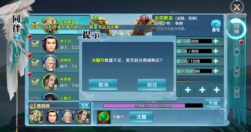 洗髓完成后,可以使用资质丹进一步提升同伴潜能。但要注意潜能上限受资质等级和同伴等级双重限制。想要突破上限,只能通过升级或再次洗髓提升资质等级。