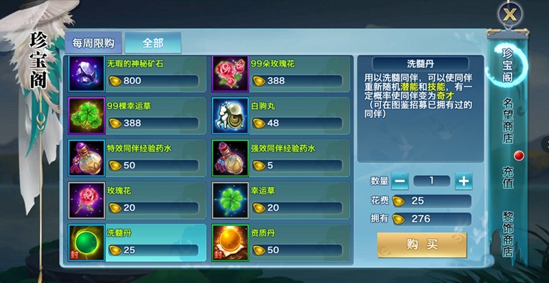 洗髓丹可以通过商城购买、摆摊交易、遣散同伴和参与家族活动获得。商城单个洗髓丹25元宝,摆摊价格会更优惠但数量有限。遣散不需要的同伴也有几率获得洗髓丹,家族试炼等活动也会奖励洗髓丹。
