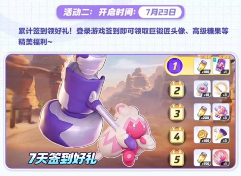 7月23日起,累计签到领好礼!登录游戏签到即可领取巨锻匠头像、高级糖果等精美福利~