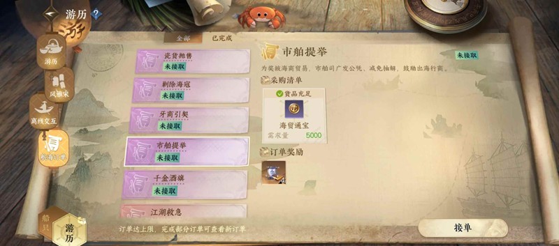 每周必做p6市舶提取,奖励随机刷新,可能有航海稀有金币、内功等