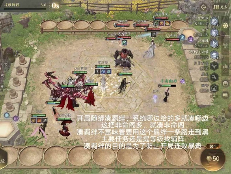 开局三场人机,看系统给的旗子和商城的棋子哪个羁绊的多,多的就拿,顺便抓俩固守或力士当前排,三场人机结束后升四级打真人
