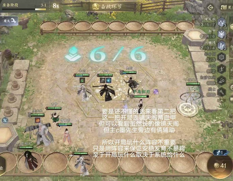 3-1升六级,然后开始攒50金币,右下角旗子商城同上,只买能升星的和辅阵保证前期不连败