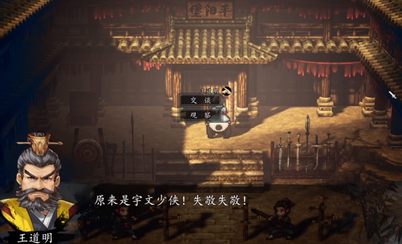 平阳堡支线包含两个任务,分别是平阳王家和重返平阳堡。要开启平阳王家任务,需要先完成四大武家支线。进入任务后,玩家需要前往西城,与吕仙儿一同进入平阳堡。在堡内会遇到王家后人,可以选择与其战斗,获胜后能获得棍法秘籍。随后通过对话见到王道明,接着需要前往天水城寻找王天聪。