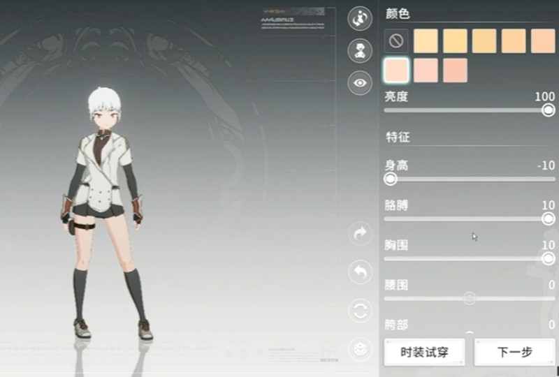 脸型调整支持五官细节的精细化定制。从眉毛形态、眼睛轮廓到睫毛密度,从眼瞳颜色、鼻子弧度到嘴巴线条,甚至牙齿排列样式,都提供了丰富的选项。面部特征调整允许添加痣、雀斑等细节元素,并支持颜色自定义。体型调整则覆盖身高、臂展等整体比例参数,以及腿部颜色、整体亮度等外观细节。