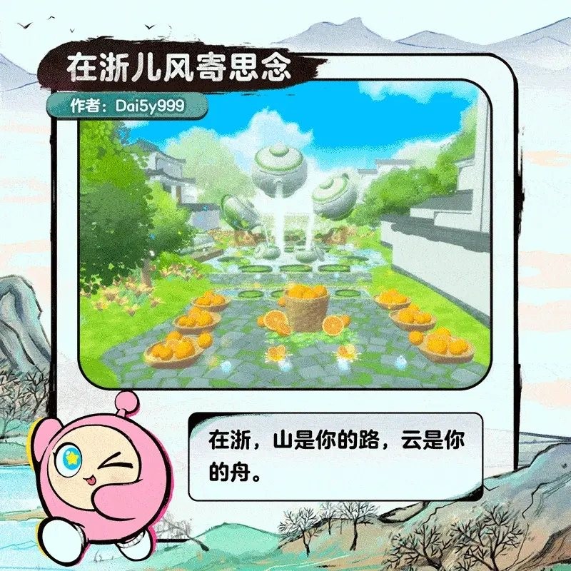 【在浙儿风寄思念】几颗丽水橙,滚落成跳板;一把青瓷壶,倾出山水路。跑跳间,古堰的墨色、畲乡的风情在指尖跃动成诗。在浙儿,山是你的路,云是你的舟。