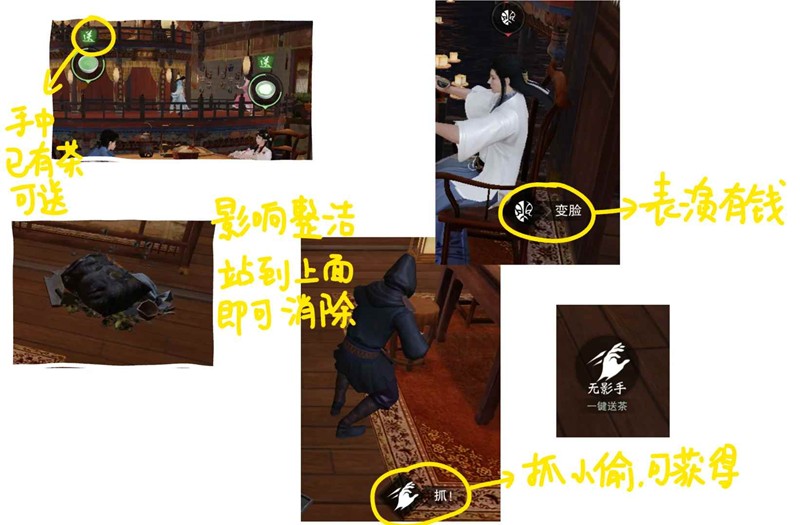 送茶过程中会遇到小偷,抓住他有概率给“无影手”buff,可以一键送茶,非常好用!
