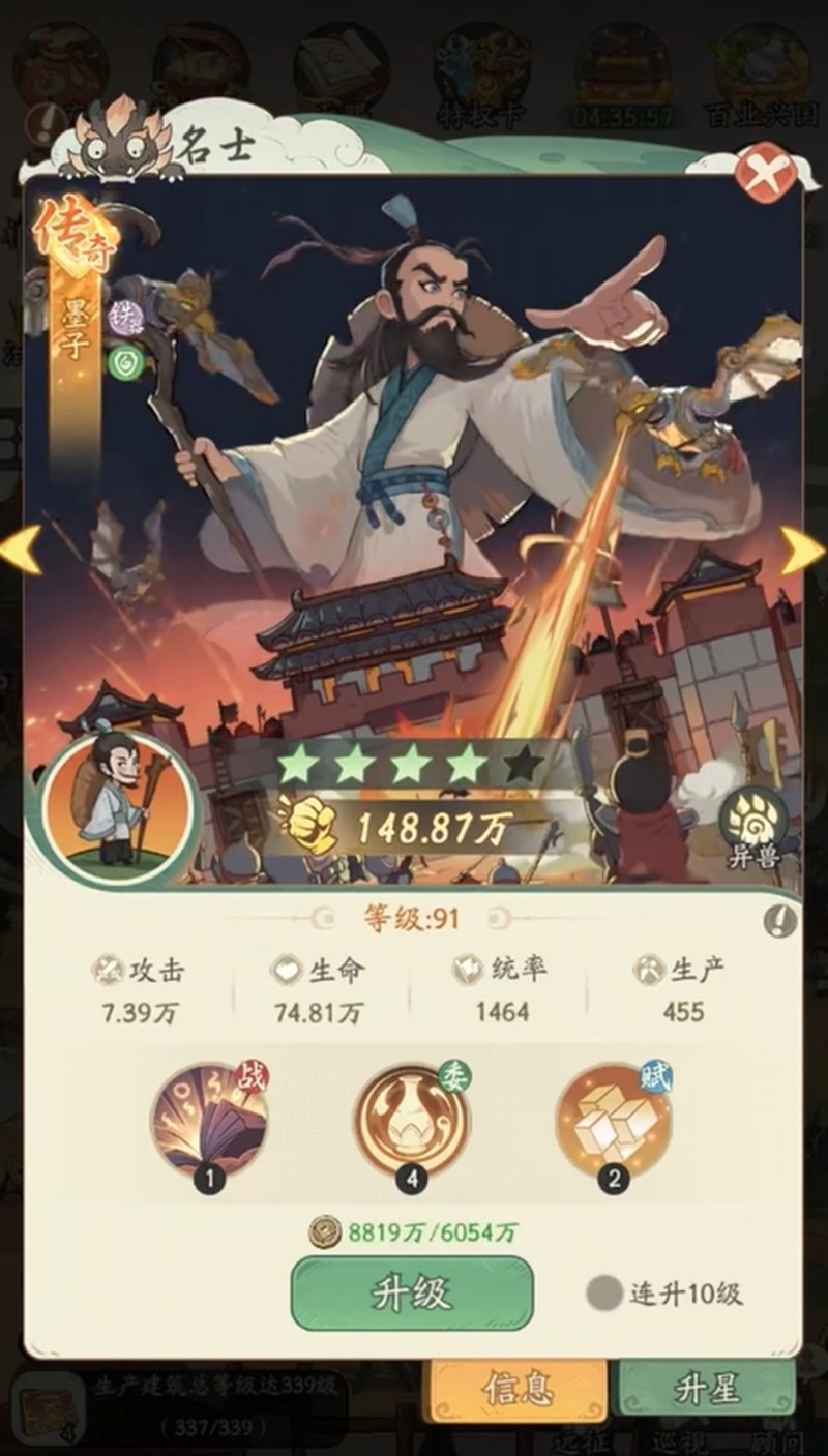 在时光大爆炸中,名士分为多个品级,通过颜色可以直观区分。紫色及以上品级的名士是最值得投入资源培养的,这些高品质名士不仅基础属性优秀,成长潜力也更大。而低品级名士由于成长上限较低,培养性价比不高,建议不要过多投入资源。