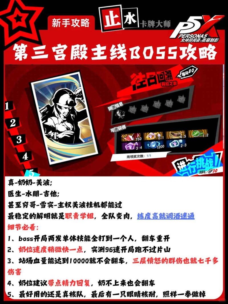 队伍推荐:只要带个奶妈就行,优先美波,猫/四爱水朋也行;输出最好是单体(真/医生),其他C其实也能过只要单体技能点高也行