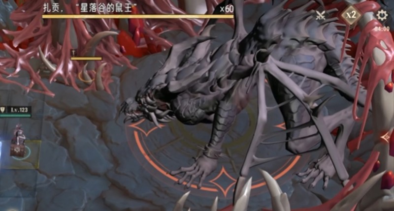 扎贡的主要技能包括甩尾抽打和坠星余震,这两个技能都有8秒蓄力时间。玩家可以通过位移操作来躲避,或者利用骨刺温床的硬直效果进行打断。当boss释放晶石裂生召唤晶石鼹鼠时,需要立即用范围输出眷属进行清理。